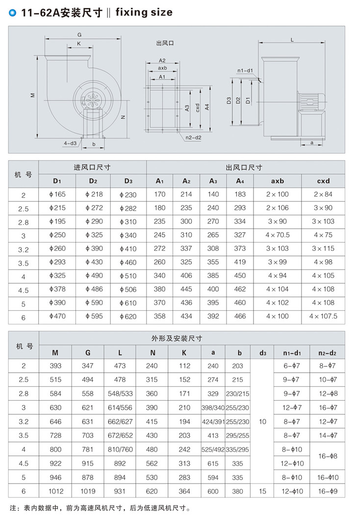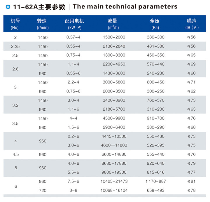 11-62型A式低噪声多翼离心通风机